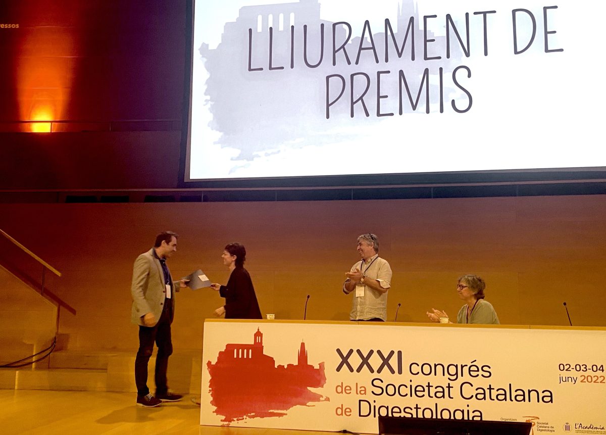 Dr Marco Antonio Álvarez receives the award for best poster at the 31st Congress of the Societat Catalana de Digestologia